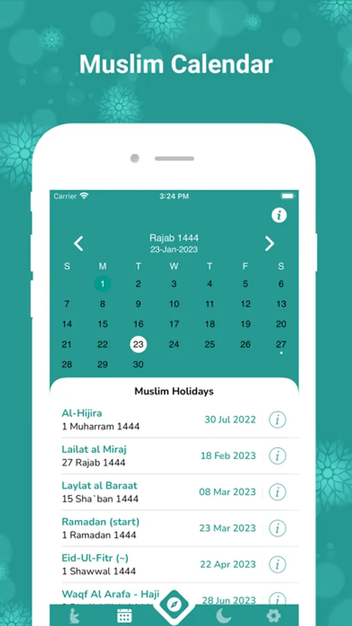 - Islamic Calendar also provides the Muslim holidays coming for the calendar year.
