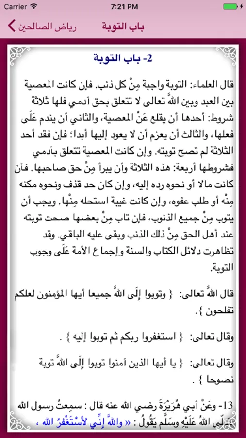 كتاب رياض الصالحين من كلام سيد المرسلين مؤلفه الإمام يحيى بن شرف النووي الدمشقي، ويجمع في هذا الكتاب الأحاديث الصحيحة المروية عن الرسول محمد بن عبد الله صلى الله عليه وسلم في جميع شؤون العقيدة والحياة، ويعرضها مرتبة في أبواب وفصول، لتكون موضوعات يسهل على القارئ العودة إليها والاستفادة منها. يضم الكتاب 1903 أحاديث مروية بسند مختصر يبدأ بالصحابي غالباً، وبالتابعي نادراً، مقسمة على 372 فصلاً. وينقل أقوال الرسول محمد صل الله عليه وسلم وفعله كما يرويه الصحابة، وفي حالات قليلة ينقل بعض أقوال الصحابة وأفعالهم متأسين بالرسول محمد أو مجتهدين بهديه. ويوزع الأحاديث في خمسة عشر (كتابًا) ويضم الكتاب عدة أبواب يختلف عددها باختلاف موضوعها، والأبواب مرقمة بالعدد المتسلسل من أول الكتاب إلى نهايته، يبلغ مجموعها ثلاثمائة وثلاثة وسبعون باباً.