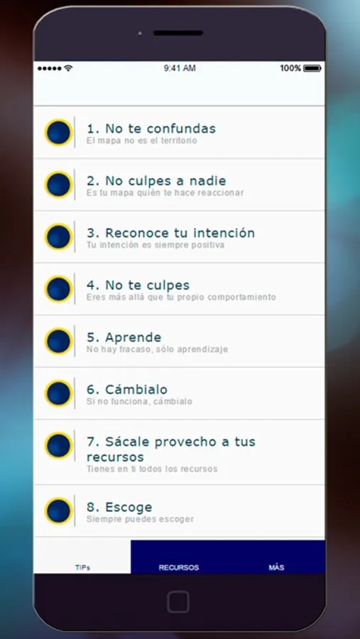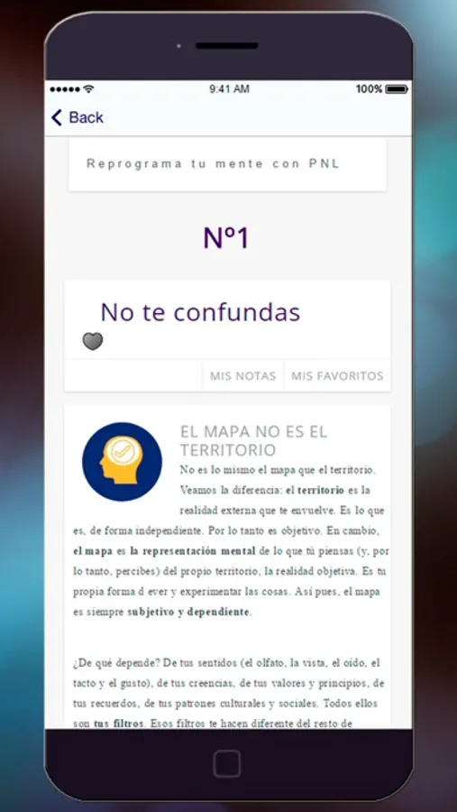 Con esta app te convertirás en tu propio terapeuta de PNL. Sabrás qué forma de modelo mental necesitas para alcanzar tus metas, sean de amor, riqueza, abundancia, salud, amistad, trabajo, desarrollo personal y/o espiritual. Si te gusta la PNL, el coaching, la hipnosis, el desarrollo personal, el mundo de la auto-ayuda y superación personal, la psicología o simplemente te gusta ayudar a los demás, entonces, aquí tienes todo lo que necesitas para practicarla y cambiar vidas.