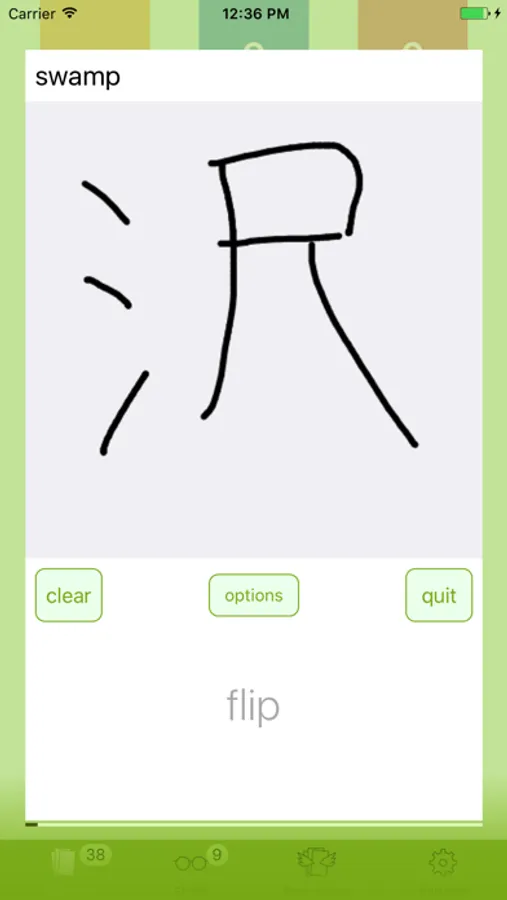 * Ability to draw each kanji as you remember it on the card's front, and then flip to compare with the actual kanji.