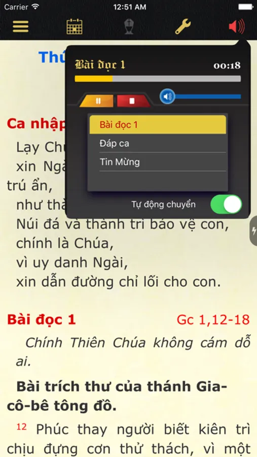 - Nghe audio đọc Kinh Phụng Vụ và Bài Đọc.