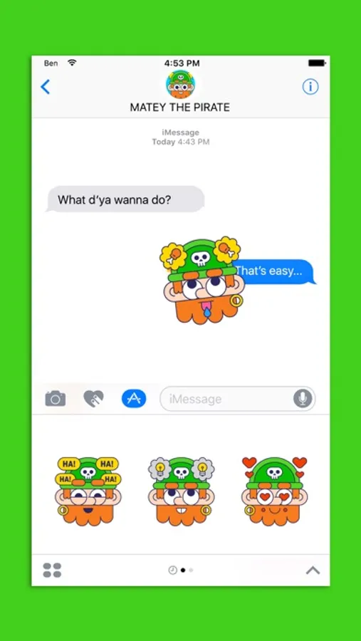 Matey the Pirate Stickers are exclusive to iOS designed by top illustrator Ben Boothman - @ben_breadloaf