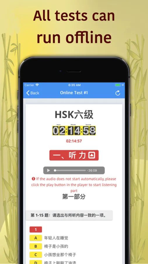 HSK Online Test preparation provides you with real interactive test for all sections to get to the best preparation for the HSK.