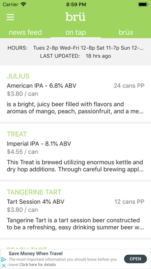 The brü app notifies you as soon as the newest brews are released at Tree House Brewing Company in Charlton and Monson, MA. You can also use it to ask other users how long the line is, what beers are being released, or just how the weather is...