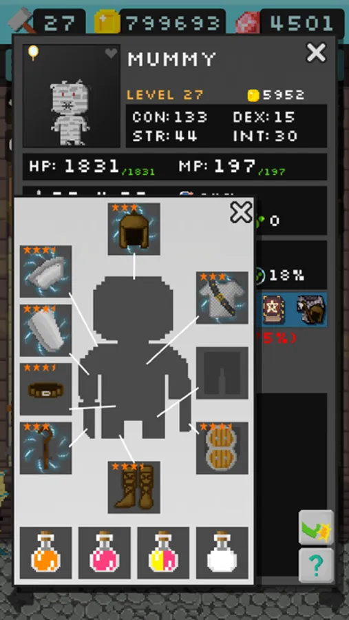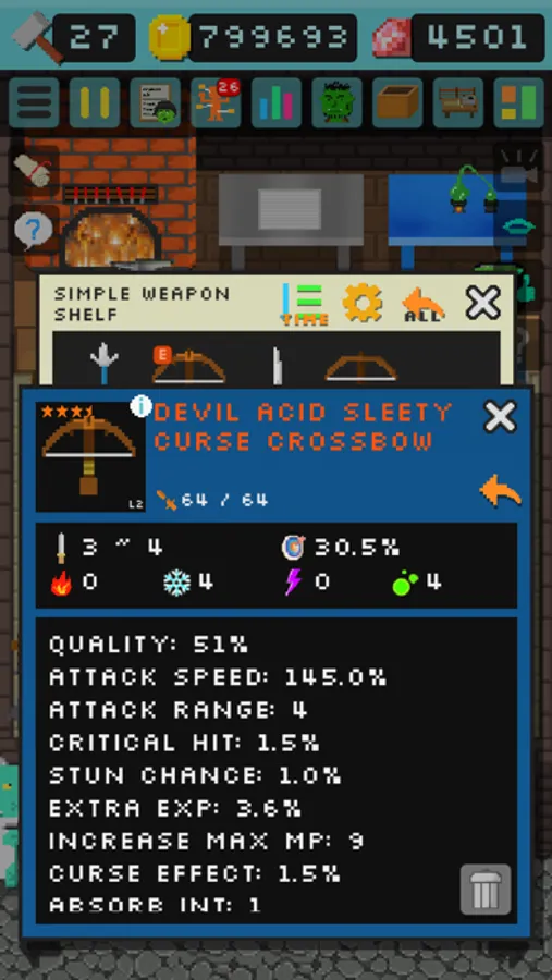 In Goblin’s Shop, the player is a goblin who has been bullied by humans and he always wants to get it even. Unfortunately, however, Mr. Goblin realizes that he is too weak to beat any human soldier. Then the idea of opening a shop occurred to him, so he decided to sell weapons, armors and potions to other monsters. To take revenge against humans, he puts together an adventure team with other monsters.