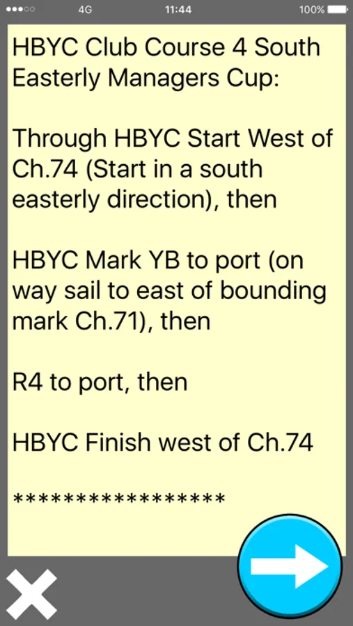-Create and store your own marks and courses, either by entering co-ordinates or "pinging" current location. User courses can be compiled with a combination of existing and custom marks, in a few moments. Ideal for race days where you're handed a new course at the last minute. It's also easy to enter into the app the entire course list for your club at the start of the season, so any course you may require is instantly accessible. Up to 200 courses may be compiled and stored in this way, however the full version of the app is required to navigate within user courses. Up to 3 user marks can be created and stored (200 in the full version of the app)