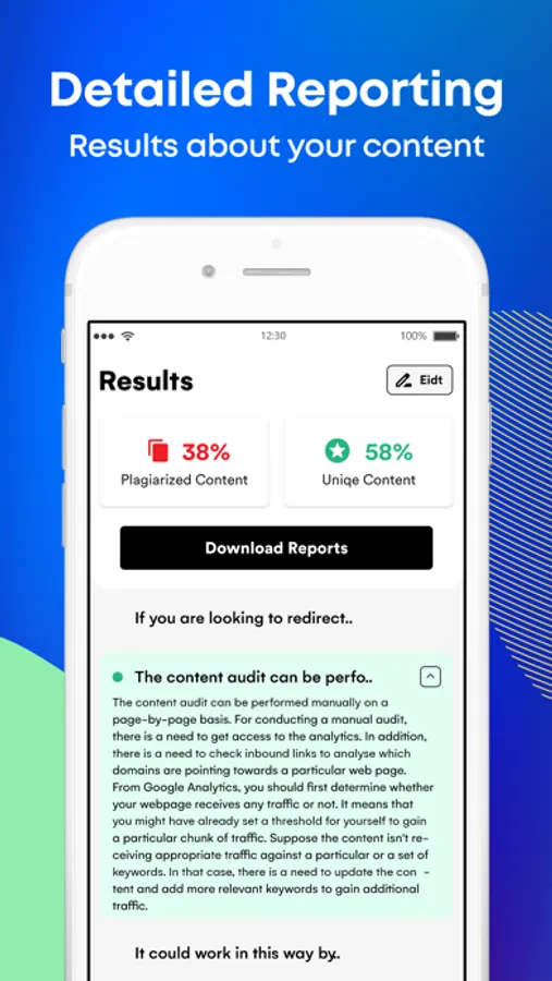 Plagiarism can ruin your life! Realizing the fact that a quality plagiarism detector is the need of the hour to check plagiarism, we have come up with this handy app which you can use anytime, anywhere to check for plagiarism. Made with thorough research on what the users are looking for in a good online plagiarism checker or plagiarism detector, we have implemented all the techniques and strategies required to make this the Best Plagiarism Checker, for everyone.