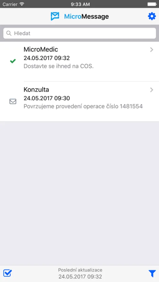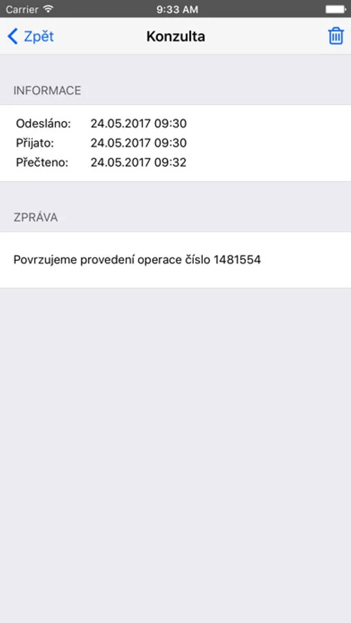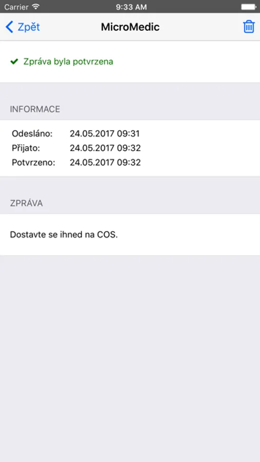Poskytuje plný komfort při potvrzování došlých zpráv/vyrozumění bez nutnosti posílat zpětnou SMS zprávu a to pomocí stisku tlačítka přímo v aplikaci nebo v notifikační oblasti operačního systému mobilního zařízení.