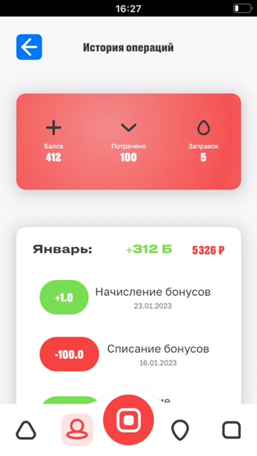 - Получить отчет по своим операциям, Вы увидите на какой АЗС была совершена заправка, сколько вы заплатили, сколько бонусов было зачислено, количество топлива,