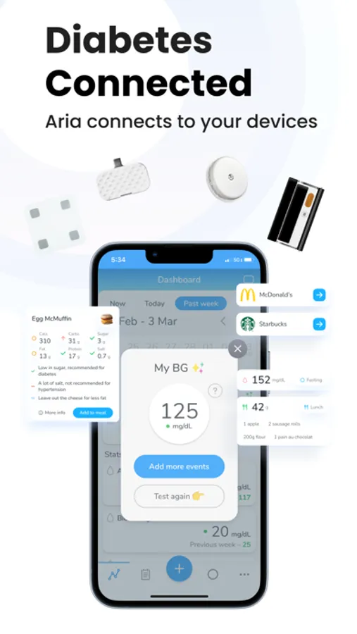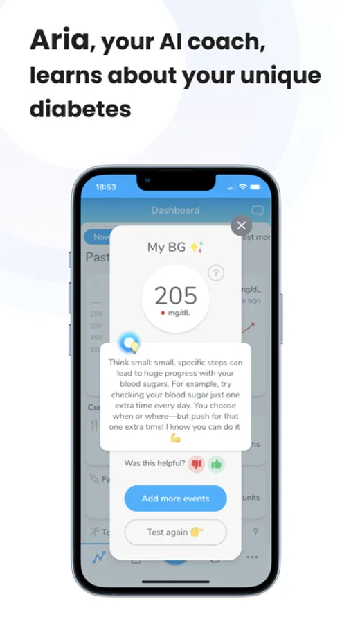 See all of your data in one place • Sync CGMs + fitness trackers • Search carbs • Your very own virtual assistant