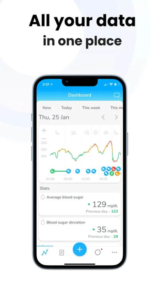 + Full integration with Apple Health — import blood sugar, meals, exercise, and sleep in real-time