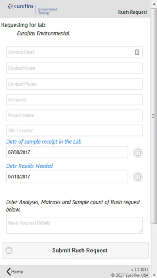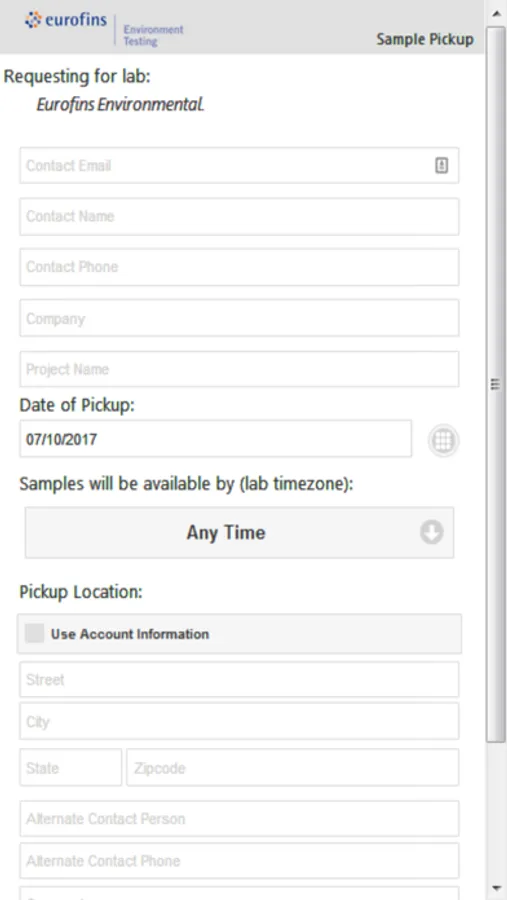 This app will allow clients to schedule a sample pickup, request a rush analysis, order containers by analysis number.