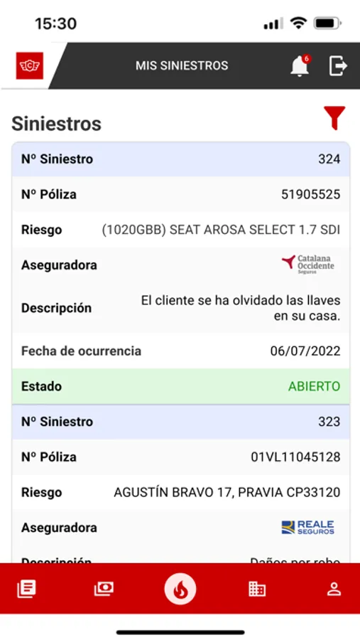 - Acceder al histórico de siniestros así como su situación.