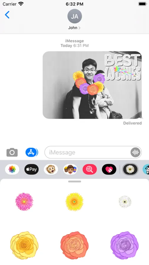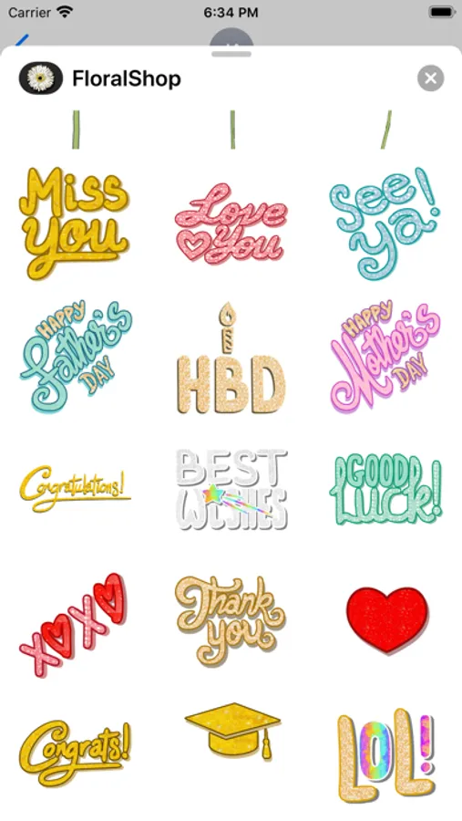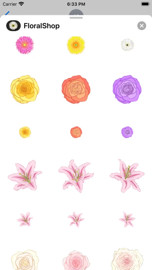 Create a bouquet of flower stickers for your love ones. Add flowers to your conversations for special occasion such as Graduation, Birthday, Mother's Day, Father's Day or everyday life's moment.