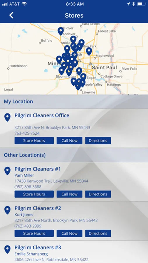 5) Quickly contact Pilgrim Dry Cleaners by phone or email and access their website all directly from your device.