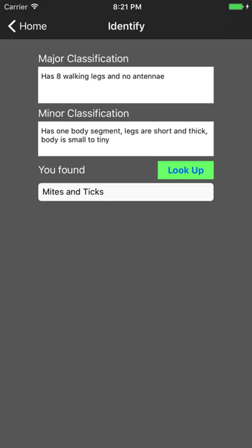 Bug Journal has an interactive identification tool built in. Simply answer a couple questions about the bug and the app will narrow down the possibilities. You will also be able to look up the various bugs for more information.