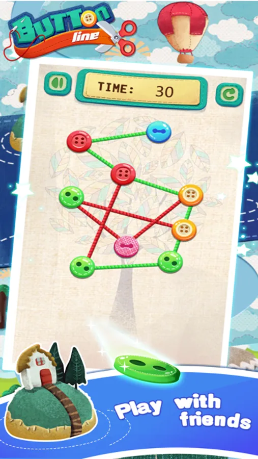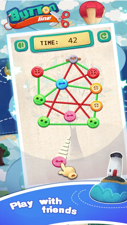Button line is a brain-exercising puzzle game! Move buttons so the attached line won’t be crossing! Also, don’t accidently cut the string because of the scissors nearby!