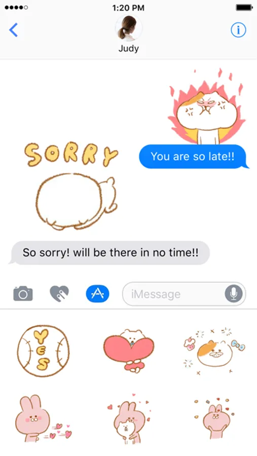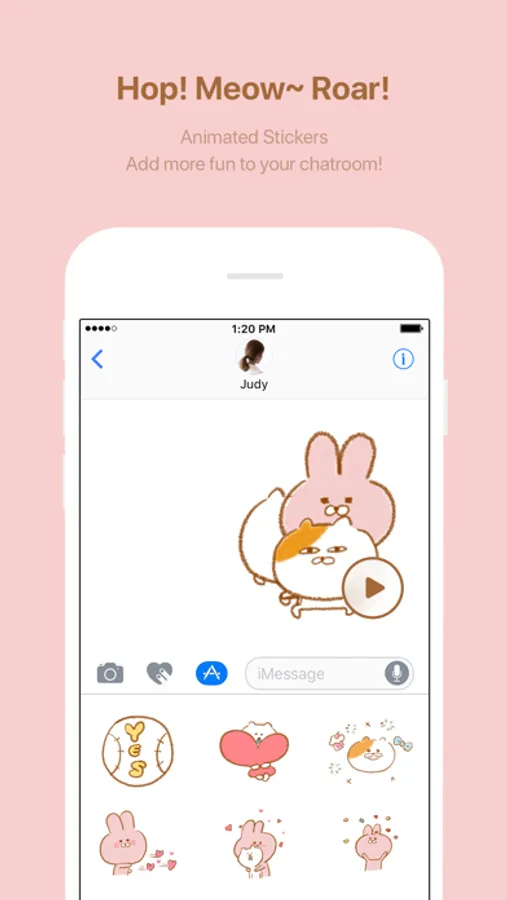 Enjoy 24 kinds of adorable, cute animation stickers in your chatroom.
