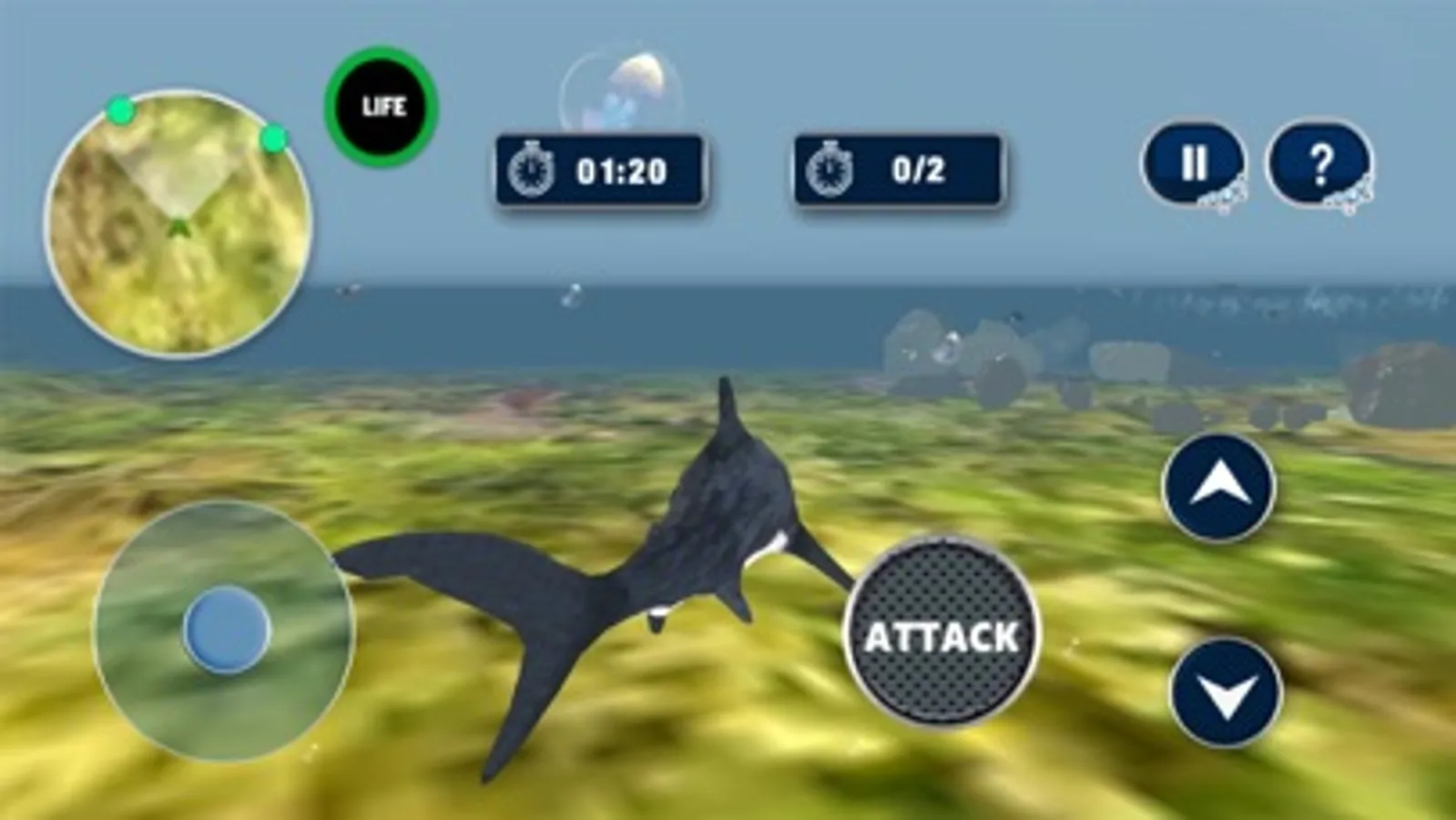 Detect small ocean animals, fishes and humans and attack them to survive! Being a killer shark is fun!