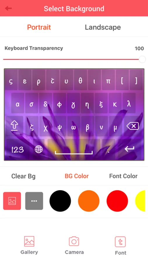 → Customize Theme provides facility of Keyboard Transparency, Background Color, Font Color, Font Apply in Greek keyboard.