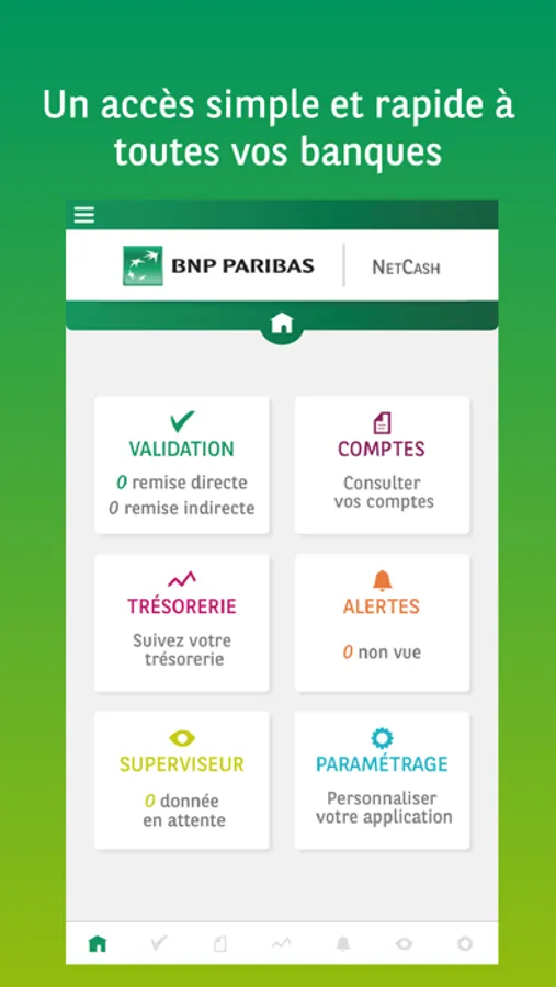 NetCash mobile est accessible à tous les clients NetCash de BNP Paribas. Retrouvez le guide d'activation et d'utilisation de ce service dans l'Espace Documentation de votre environnement web NetCash.