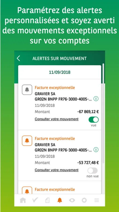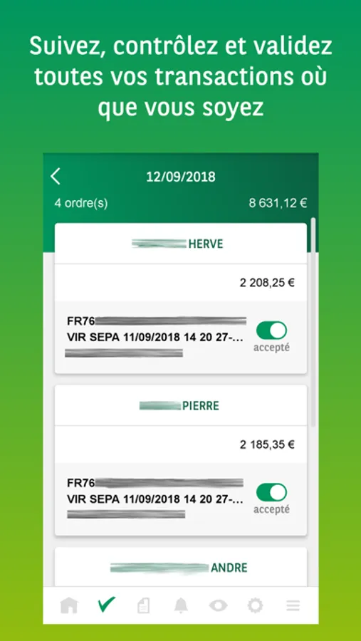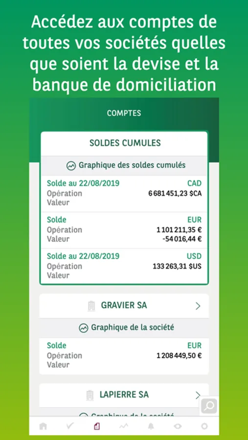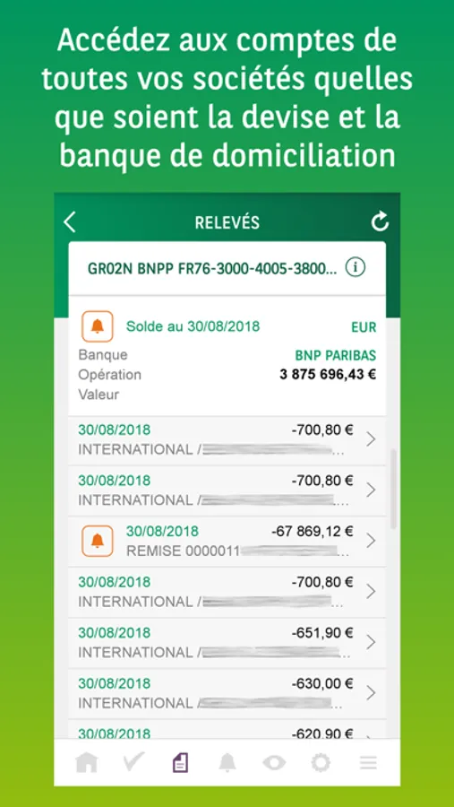 NetCash Mobile vous permet d’accéder aux relevés de comptes de toutes vos sociétés et de toutes vos banques sur votre iPhone, où que vous soyez. Soyez alertés en cas de dépassement de soldes, sur l'arrivée de mouvements exceptionnels sur vos comptes ou lorsque la banque rejette une de vos opérations. Recevez des notifications lorsque des remises sont mises en attente de signature ou qu'une action attend votre validation.