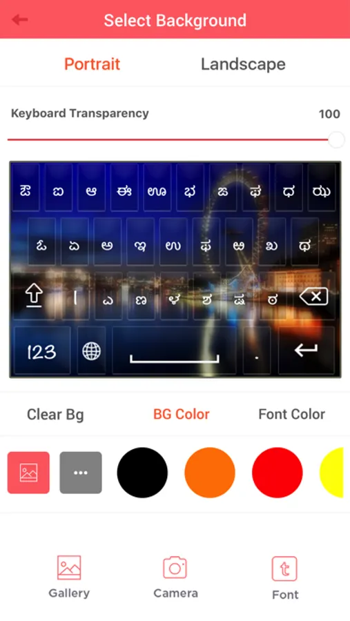 → Image facility provides users to customize themes with options of portrait and landscape mode of Kannada keyboard.