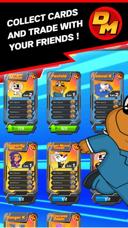 Play as Danger Mouse, Jeopardy Mouse, Colonel K, Penfold, or a host of other lovable heroes and nefarious villains from the hit BBC show, Danger Mouse. Gain new character and item cards with each win that can be used to activate new attacks in races, or enhance and strengthen your characters.