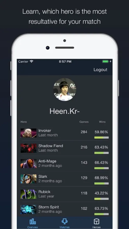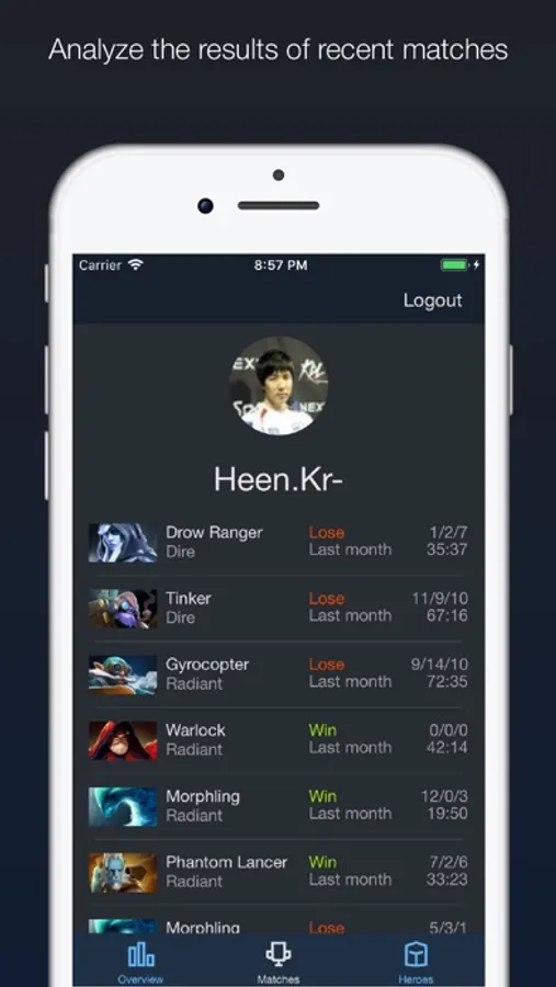 - full statistics for your profile and matches in the most beloved game among all the moba-games.