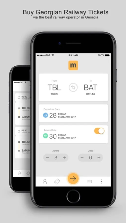 Our mobile app helps you to Buy and travel to Georgia in the Georgian Railway trains from Tbilisi to Batumi: