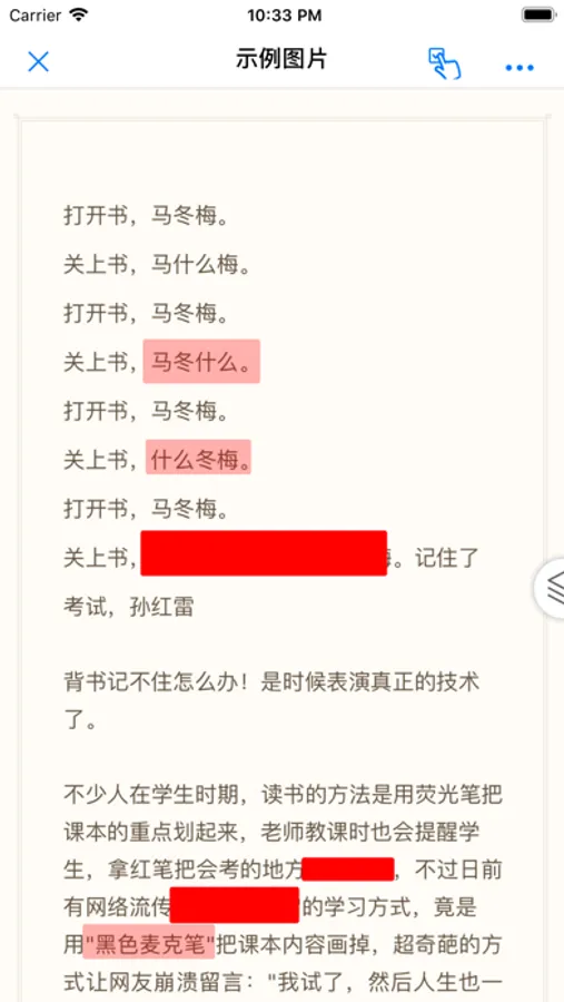 对于不方便转换成文字的内容,用户还可以将内容进行拍照并且用手指划出遮盖的区域,同样达到挖空记忆目的。