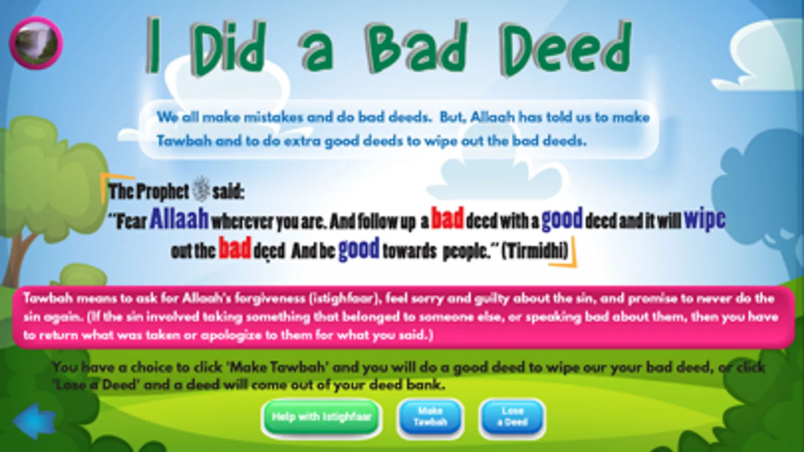 Ummah Stars is an easy, entertaining and intuitive mobile app for Muslim families. It provides life-altering Islamic morals, stories, and lessons in a fun, visually stimulating and interactive manner. The app facilitates critical thinking, cognitive development and enhanced and ethical learning in a multitude of ways utilizing story books, quizzes, puzzles, conversations, and out unique deed bank system to keep kids excited and coming back for more. Ummah Stars covers all areas of the deen: Basics of Islam, History, Quran and Arabic, Morals, and Etiquettes. Your child can move through 3 age groups: 4-6, 7-10, and 11-14 with the content being appropriate for each age group. Ummah Stars make Islam irresistible to learn.