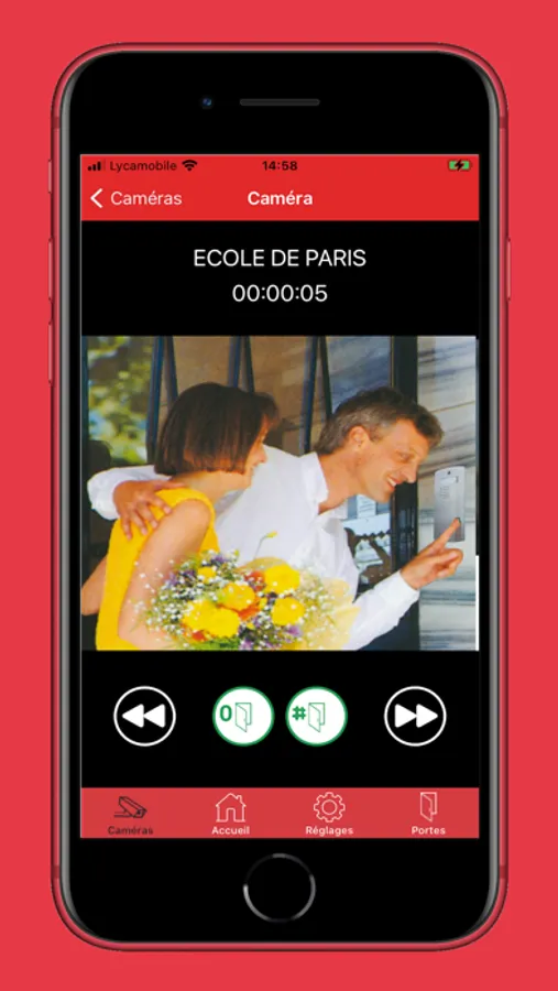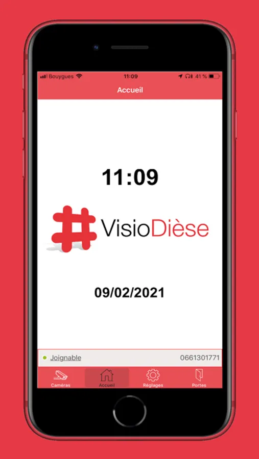 Application VoIP entre une platine vidéophone de marque Dièse Télécom. Suite à la communication entre un visiteur et un résident, le résident peut ouvrir la porte d'immeuble équipée de la platine vidéophone.