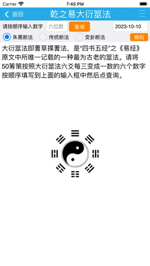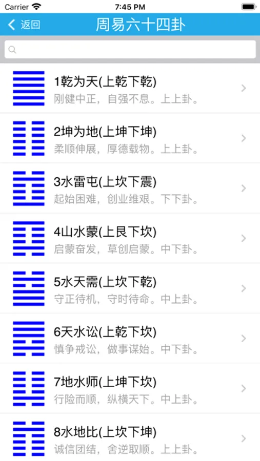 乾之易是一款实用的周易入门小工具,学习周易的好帮手,能够帮助初学者增加学习的兴趣,省去带书翻阅的繁琐,同时也提供多种操作方法,比如数字查询、大衍筮法、梅花易数、铜钱操作、六爻排盘等。周易是六经之首,儒家经典。《论语》中提到,子曰:“加我数年,五十以学《易》,可以无大过矣。”《汉书》记载:“孔子读易,韦编三绝,而为之传。”唐朝宰相虞世南说,“不读易,不可为将相。”但是很多人学习周易感觉很枯燥,浪费了大量时间,最后失去了兴趣。使用本工具可以使周易的学习不再枯燥,而且懂的其中的义理,对于塑造积极向善的人生观价值观很有裨益。特别说明:本应用内购需要联网,其它任何操作无需网络。