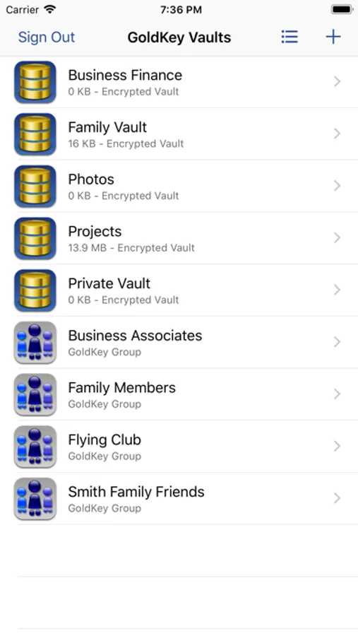 Share your encrypted vaults with as many people as you like. Create groups to organize your vaults and how you share them. Then share links to files in your vaults with the GoldKey Vaults iMessage App.