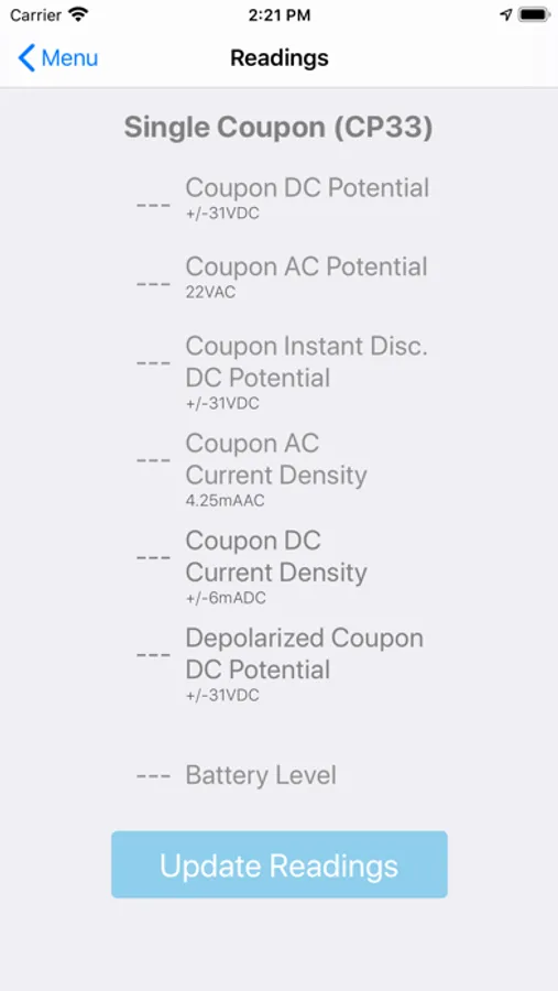 The RMU1 is an ideal solution for automated remote monitoring of CP coupons and critical bonds terminated in an industry standard 3" CP test station. It is equipped with an internal interruption relay and multiple analog measurement channels capable of accurately measuring all required AC & DC parameters for single coupons, dual coupons, and structure bond applications. This app allows access to diagnostic information on the RMU1 and setting up the configuration to meet the customer's needs. The Bluetooth configuration interface do not allow for datalogger extraction.