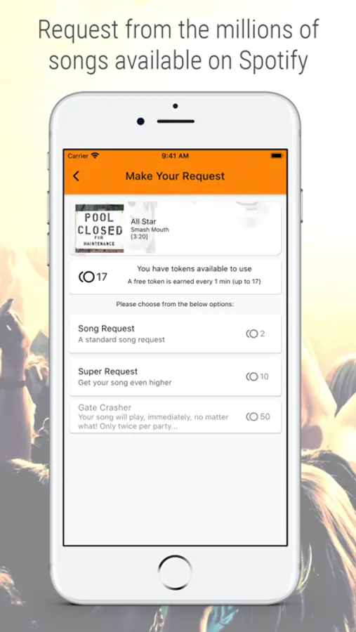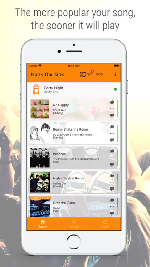 Join in the music democracy! If the music at the party is powered by Jukestar, use the Jukestar Guest app to: