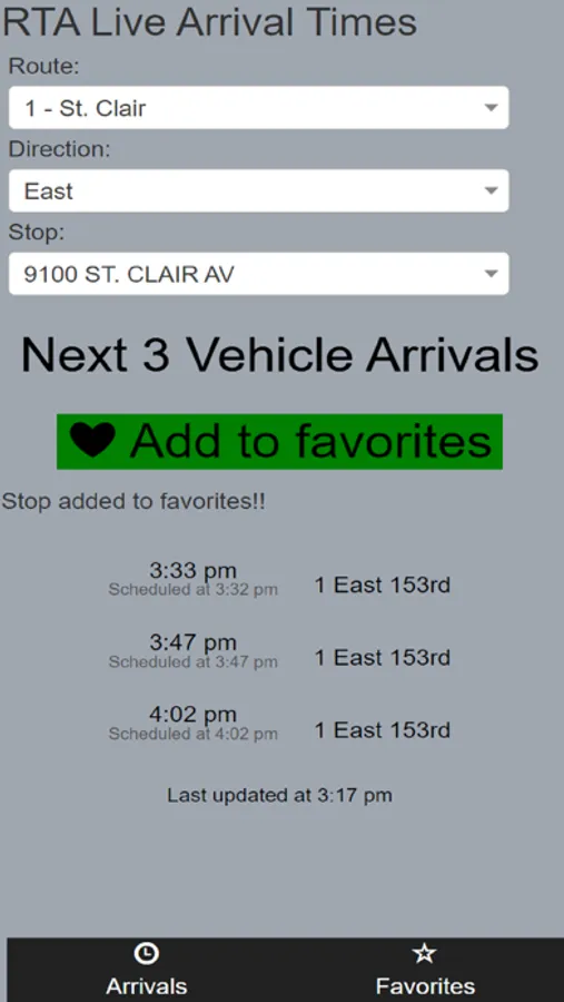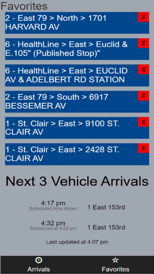 Lightweight bus tracker for Cleveland RTA (Greater Cleveland Regional Transit Authority). Simply select a route, direction and stop to see the next bus and train arrivals.