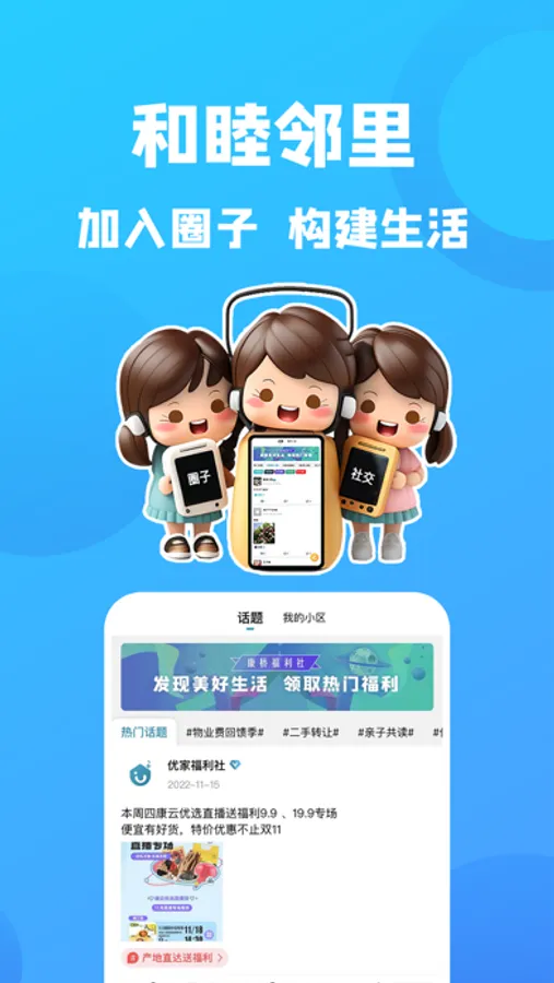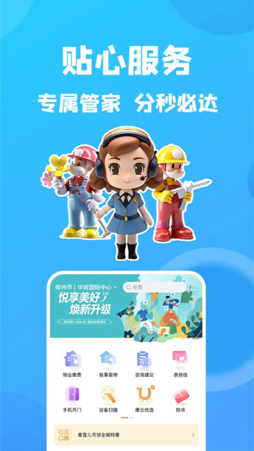 康云优家以“康派臻心,悦享生活”为愿景,从心出发,融合物业全场景权益,打造基于社区服务的圈子文化,为广大康桥悦生活客户提供全方位的优质生活服务。