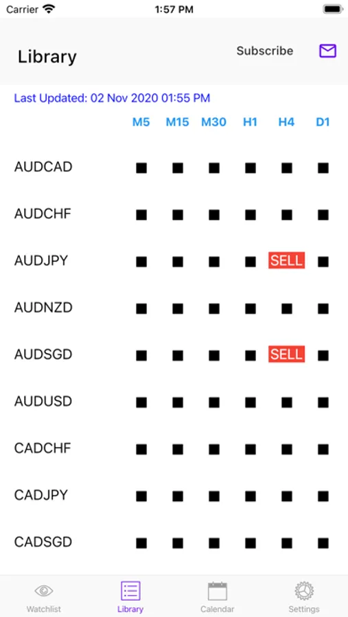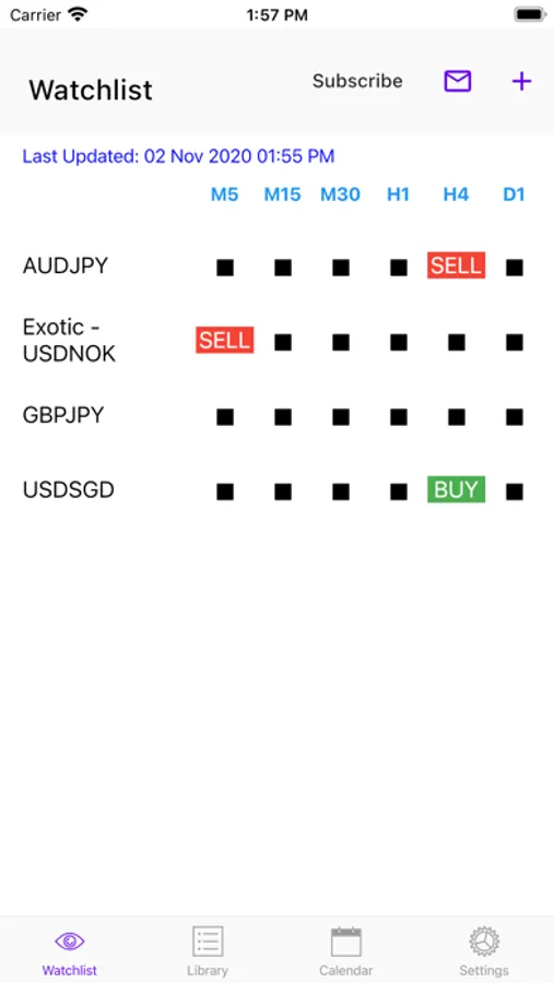 Easy PSAR provides a comprehensive dashboard that allows you to view the BUY/SELL signals on many popular instruments and across multiple timeframes (M5, M15, M30, H1, H4, D1) at one glance. (Please note that M5 is only available for viewing as an optional in-app subscription) In this way, you do not miss out any trading opportunities even on the go.