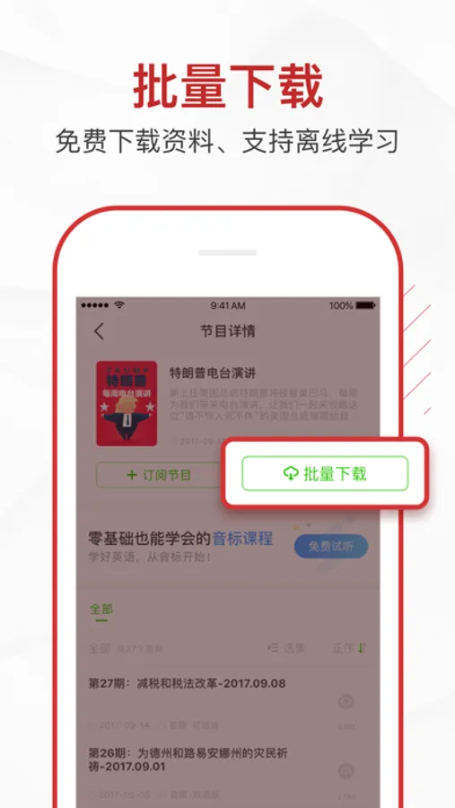 - 离线下载,资源批量离线下载,让您随时随地轻松学习英语!