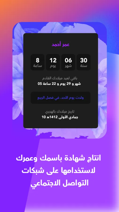 شارك صورة لمعلومات العمر لديك وعدد الايام المتبقي