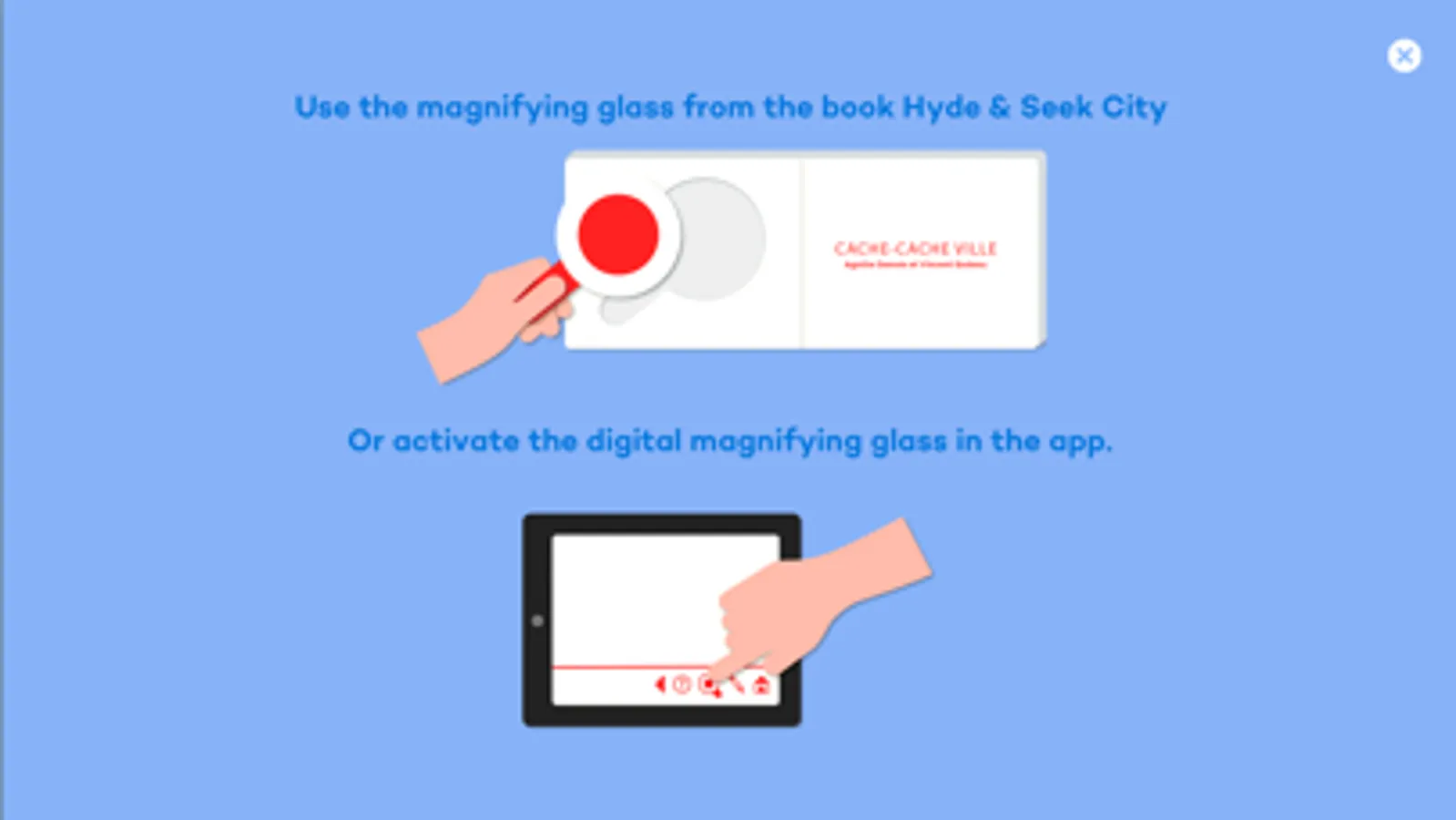 This app can be used with the book’s magnifying glass or with a digital one on your screen.