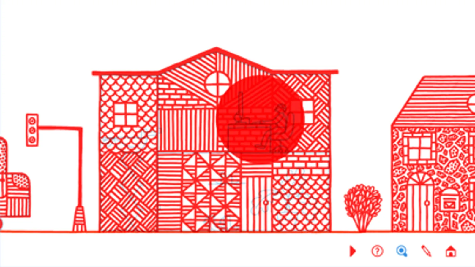 A « workshop » button offers an opportunity to draw what you imagine is happening inside houses.