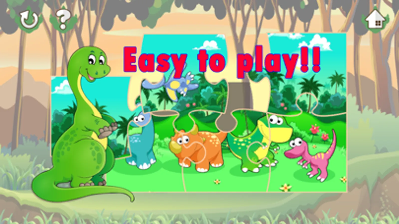 This kids puzzle game consists of dinosaur life jigsaw puzzles with cute dinosaur cartoon pictures.