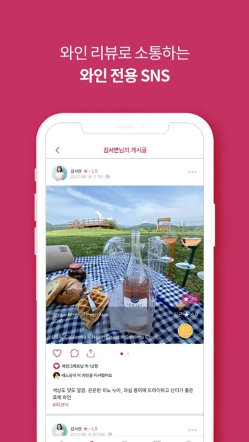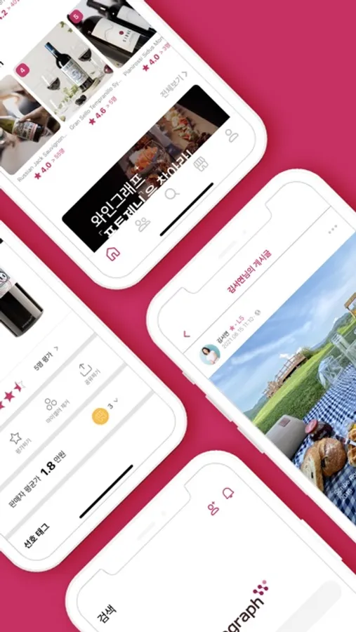 와인과 함께한 행복한 순간, 음식, 장소, 리뷰 등 소중한 경험을 국내 최대 와인 DB와 연결된 SNS 기능으로 친구들과 공유해 보세요!