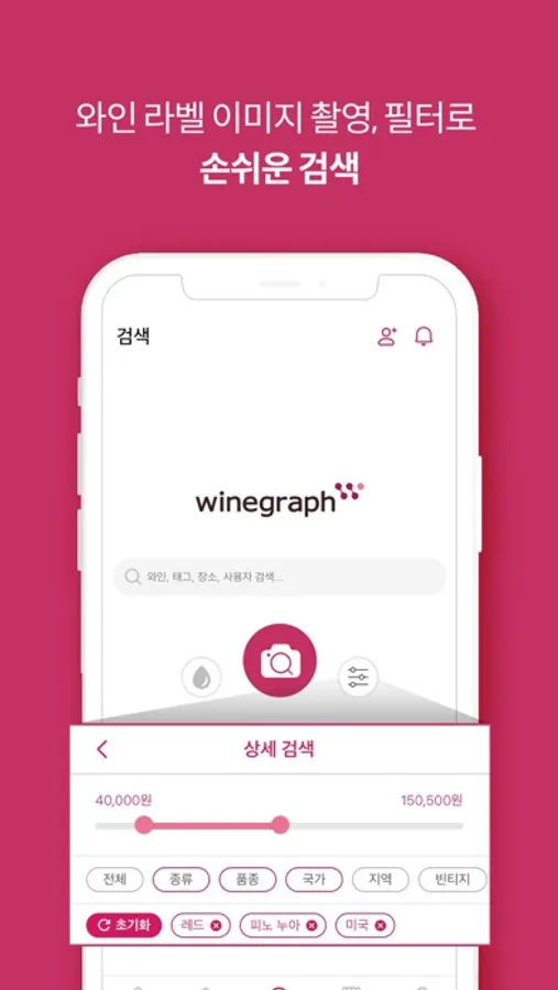 국내 최대 와인 DB와 연결된 SNS로 친구들과 리뷰를 손쉽게 공유하고 내 취향, 상황에 어울리는 와인 & 다이닝을 도와주는 손안의 소믈리에!