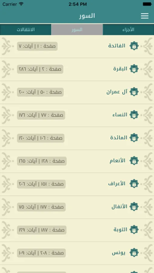 • تصميم بسيط وواضح بالرسم العثماني لصفحات المصحف الشريف.