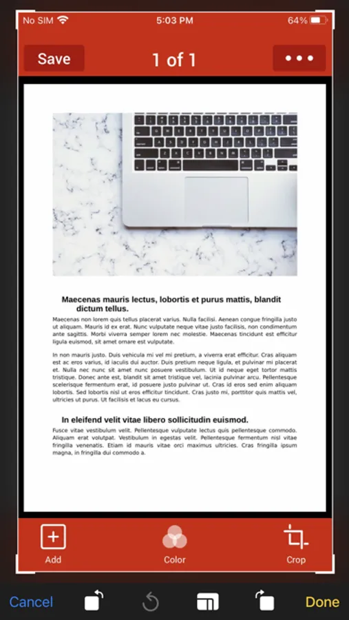 - Scan document automatically and crop document by detecting the document edge.