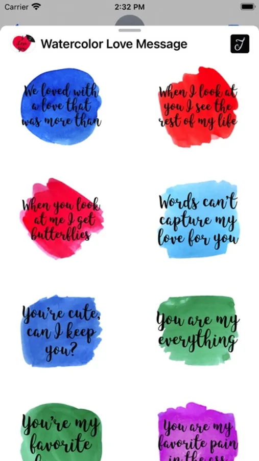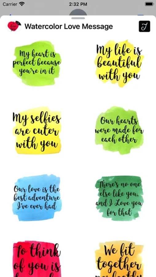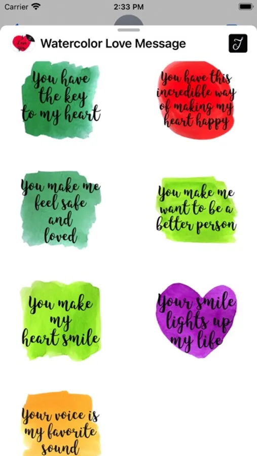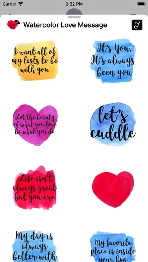 This stickers pack comes with beautiful and colourful types, sweet and short love message, easy to use in the conversation, just drag and drop, use them on the daily basis. Make every day Valentine's day.